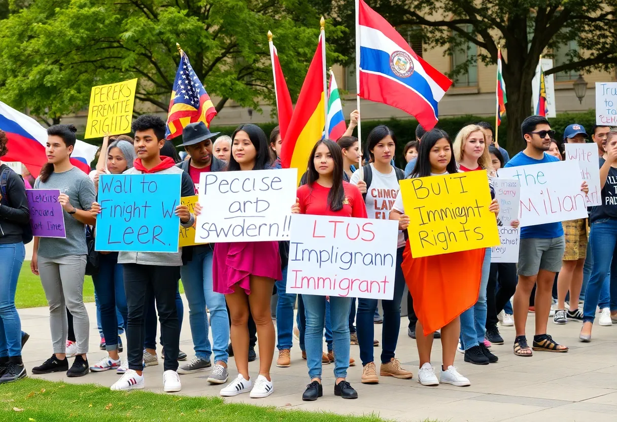 On March 5, 2025, Texas A&M University hosted the ‘Protest for Immigrants’ at Rudder Plaza, rallying students to advocate for the rights of undocumented students. Organized by various student organizations, the event emphasized unity and the need for social justice, highlighting the challenges immigrant students face. Participants displayed signs and flags in a vibrant show of solidarity, while calls for a ‘sanctuary of safety’ echoed throughout the campus. The protest concluded with a strong message of community and continued advocacy for equality.