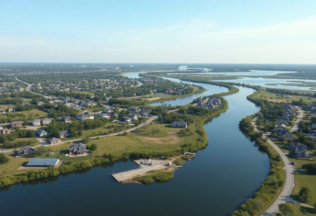 Aerial view of Georgetown, Texas showcasing a water reservoir and residential neighborhoods.